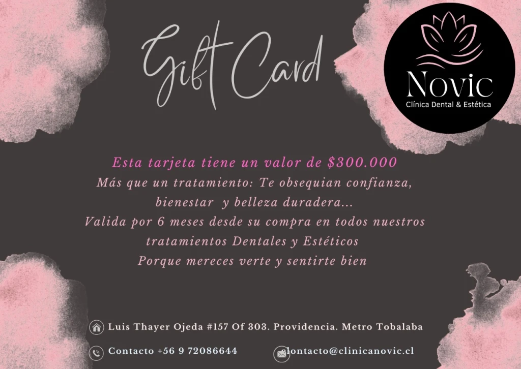 Gift Card Digital abonable a cualquier tratamiento dental o armonización facial en Clínica Novic, valido por 6 meses desde la fecha de compra.